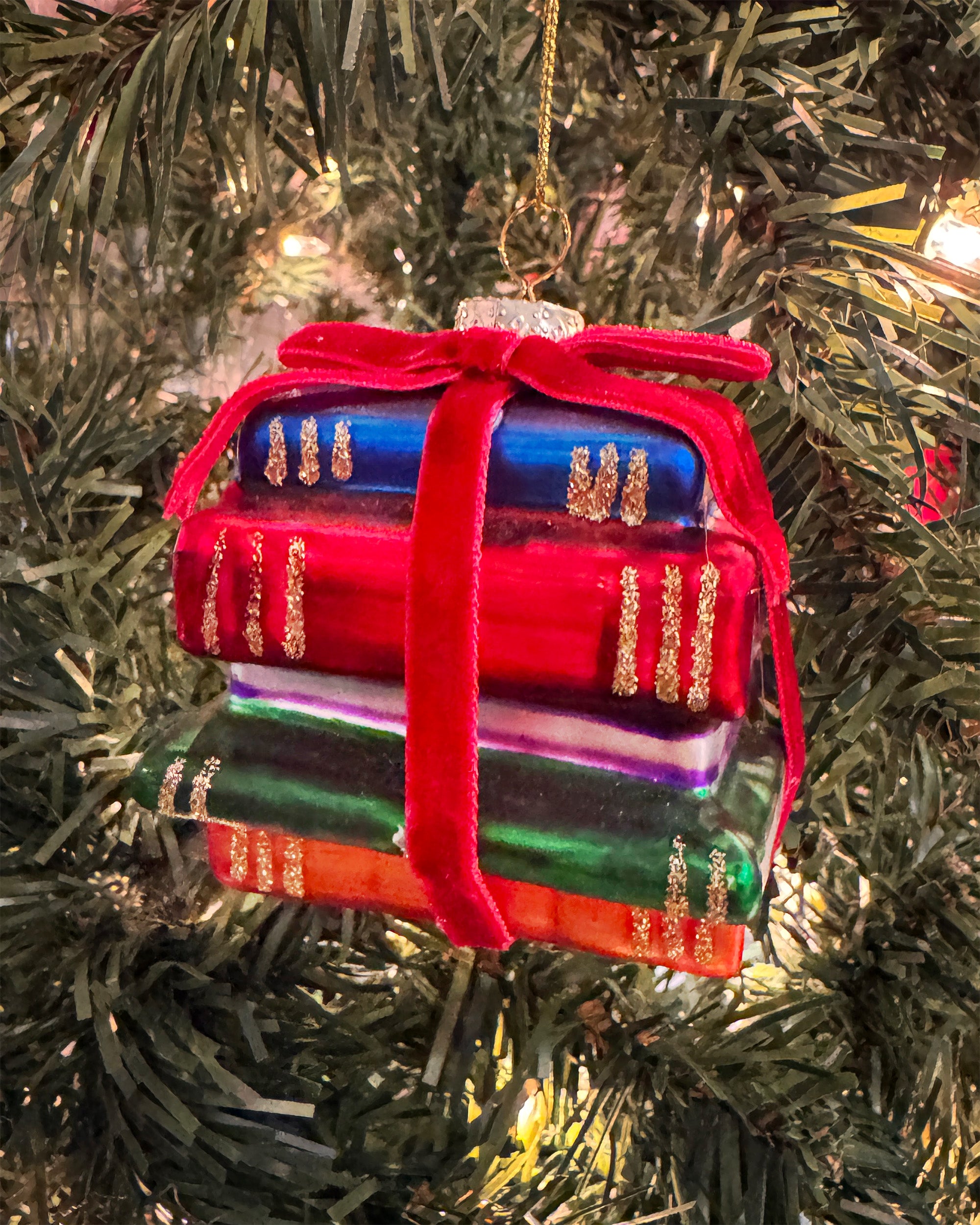 3" Stack of Book Ornament - This beautifully crafted ornament features a detailed book stack design, perfect for book lovers and avid readers. Hang it on your tree, use it in a garland, or give it as a gift to a book enthusiast. This ornament is sure to become a cherished part of your holiday decorations, capturing the joy of reading during the festive season.