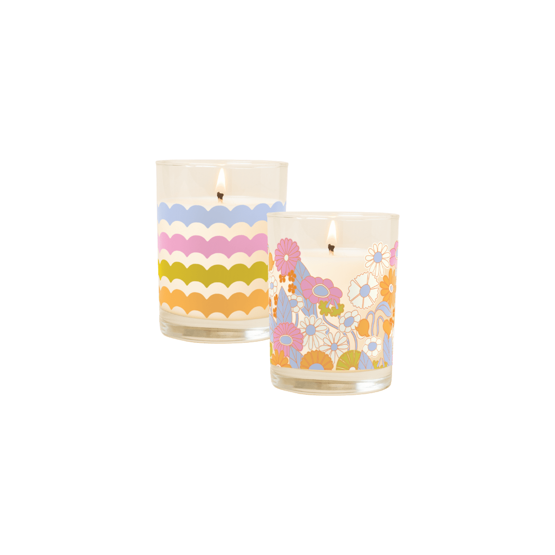 Gathering Flowers Rocks Glass Candle. Light up your space with our Gathering Flowers Rocks Glass Candle—a charming blend of style and ambiance. Housed in a classic rocks glass, this candle brings a touch of whimsy to any room while filling it with delightful fragrance. Perfect for cozy evenings, relaxing moments, or adding a playful glow to your décor. Once your candle has burned out simply hand-wash it out, remove the wick and you've got yourself a cute, new drinking glass!