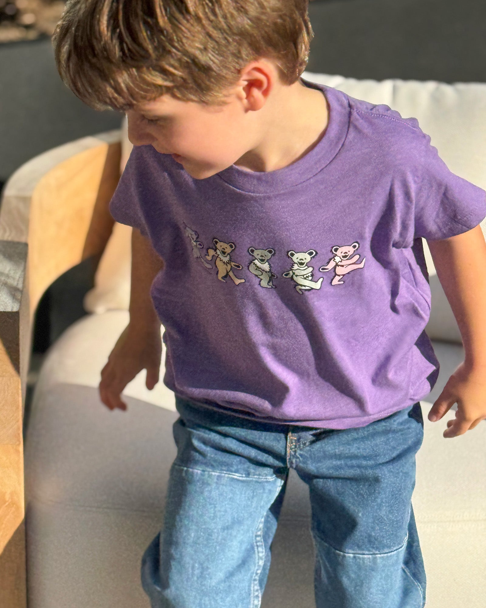 Grateful Dead Pastel Bears Toddler T is our newest shirt for your Deadhad kid! Classic unisex fit will look great on girls or boys. Original art by Taylor Swope. Printed in the USA.