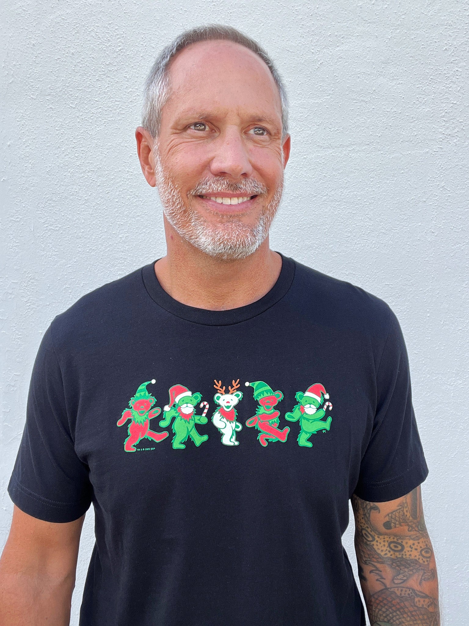 Jingle Bears, Jingle Bears, jingle all the way to Christmas with your favorite Deadhead Dancing Bears. Original artwork by Lizzy Layne for Little Hippie. Print is 10" wide.