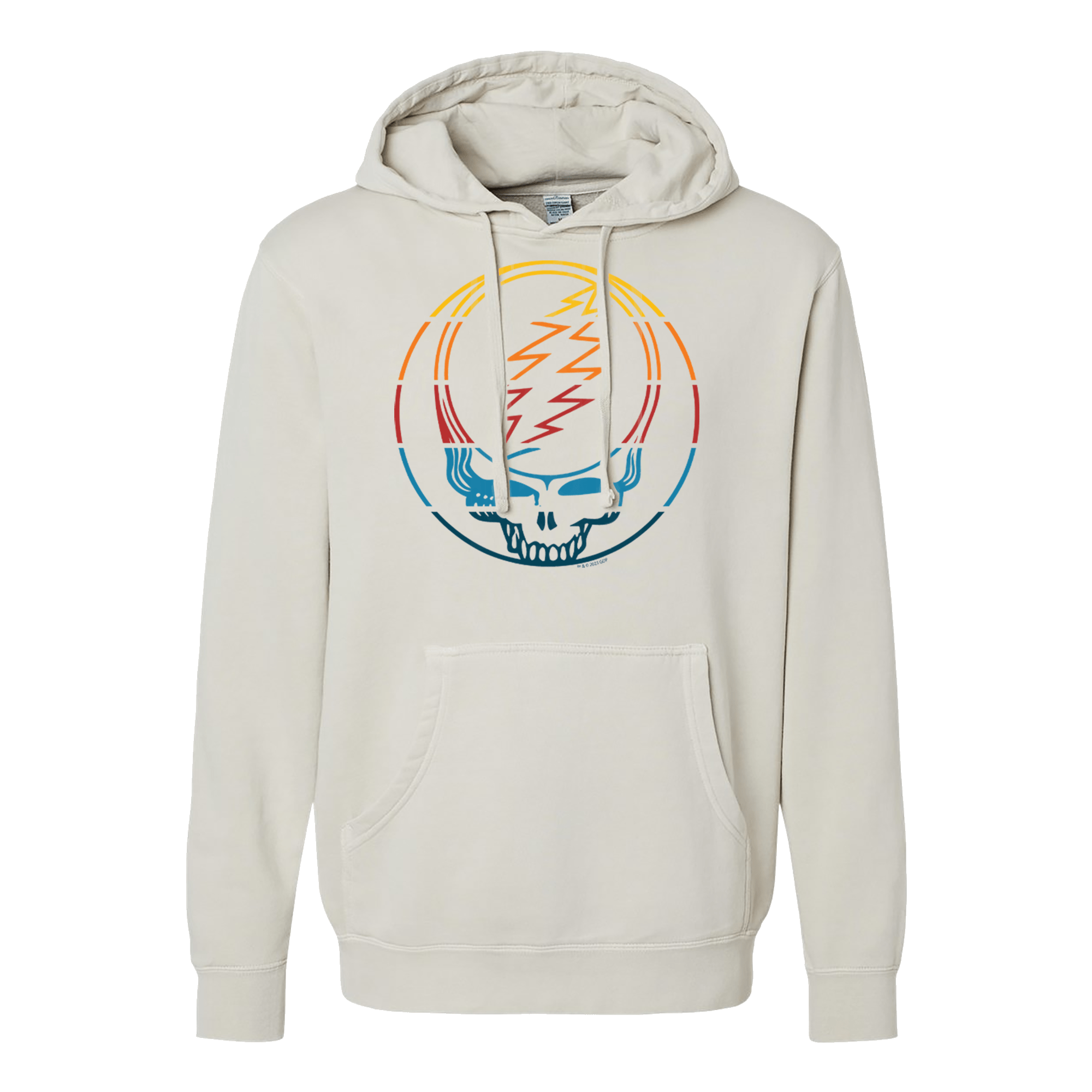 Grateful Dead Retro Stripes Stealie Pigment Dyed Unisex Hoodie.
