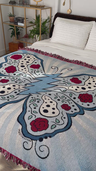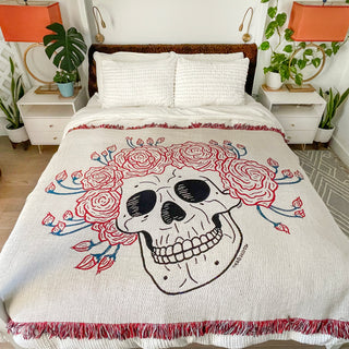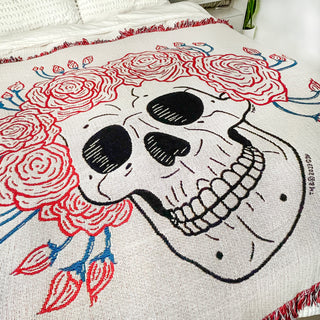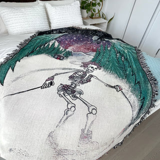 Grateful Dead Black and White Dancing Skeletons Woven Cotton Blanket