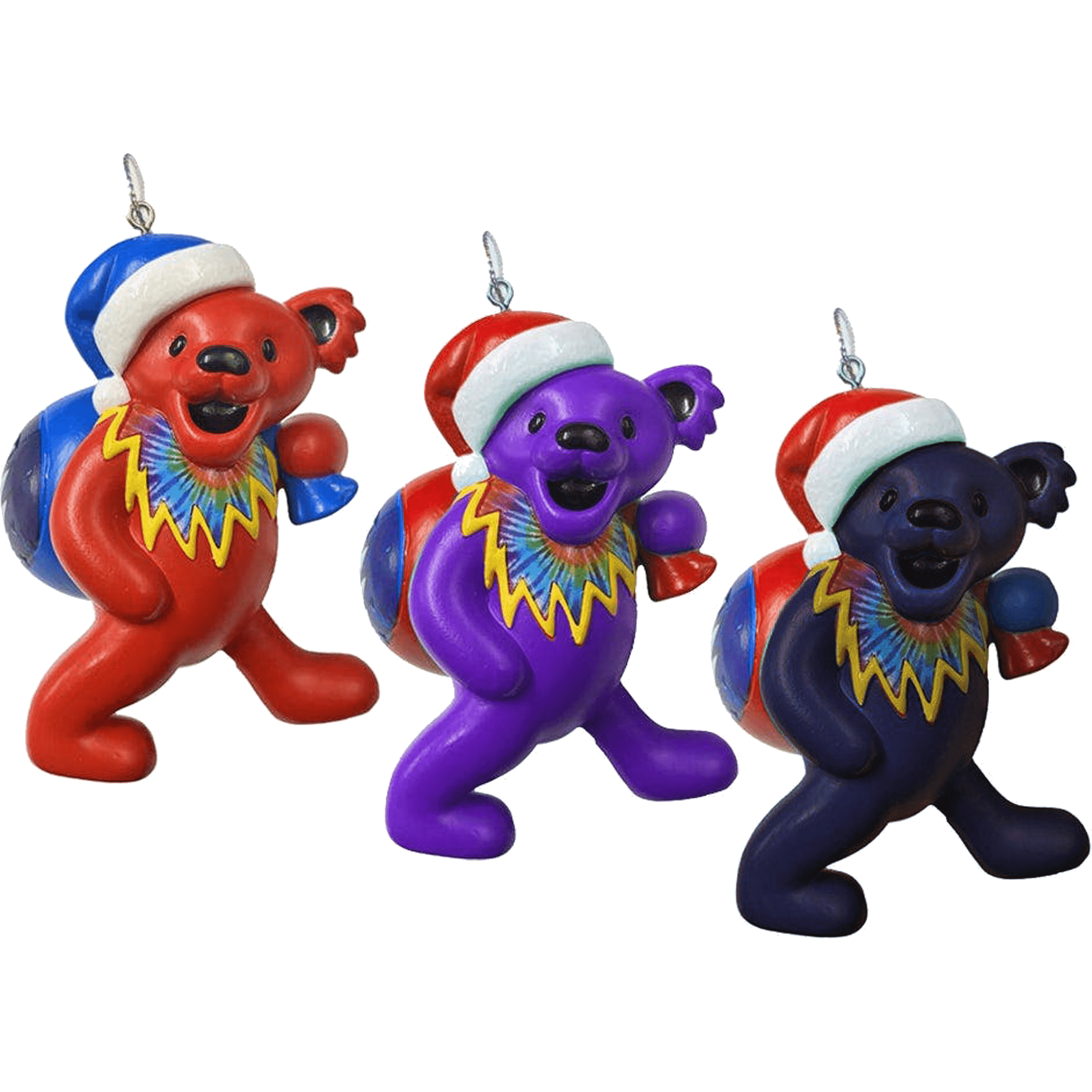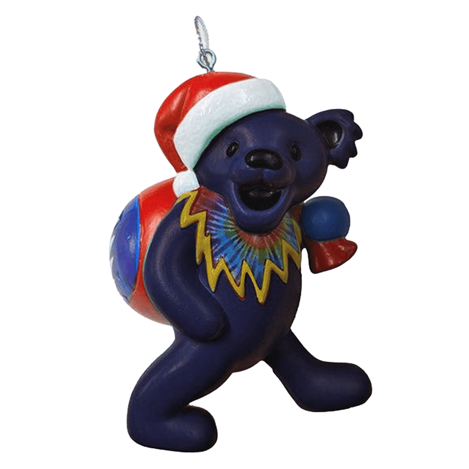 Grateful Dead Santa Bear With Bag Christmas Ornament. Imagine all the Dead Head treats this Grateful Dead Santa Bear has stashed in his thirteen point bolt sack of presents! The perfect way to decorate any Grateful Dead fan's Christmas tree. Resin cast with glitter details, this ornament is durable and built to last. Collect them all!