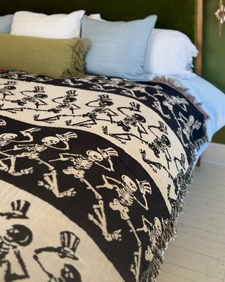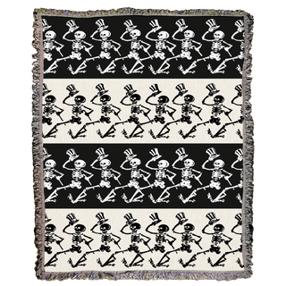 Grateful Dead Black and White Dancing Skeletons Woven Cotton Blanket