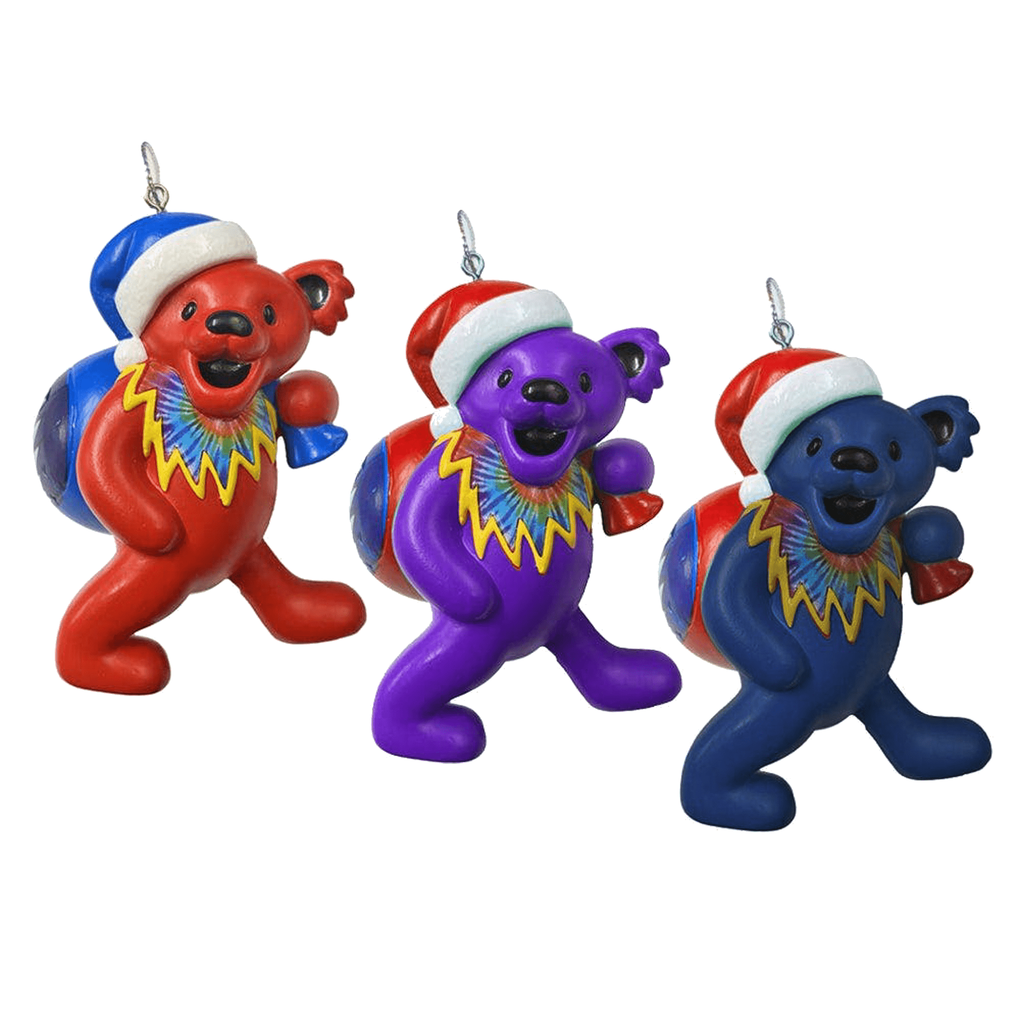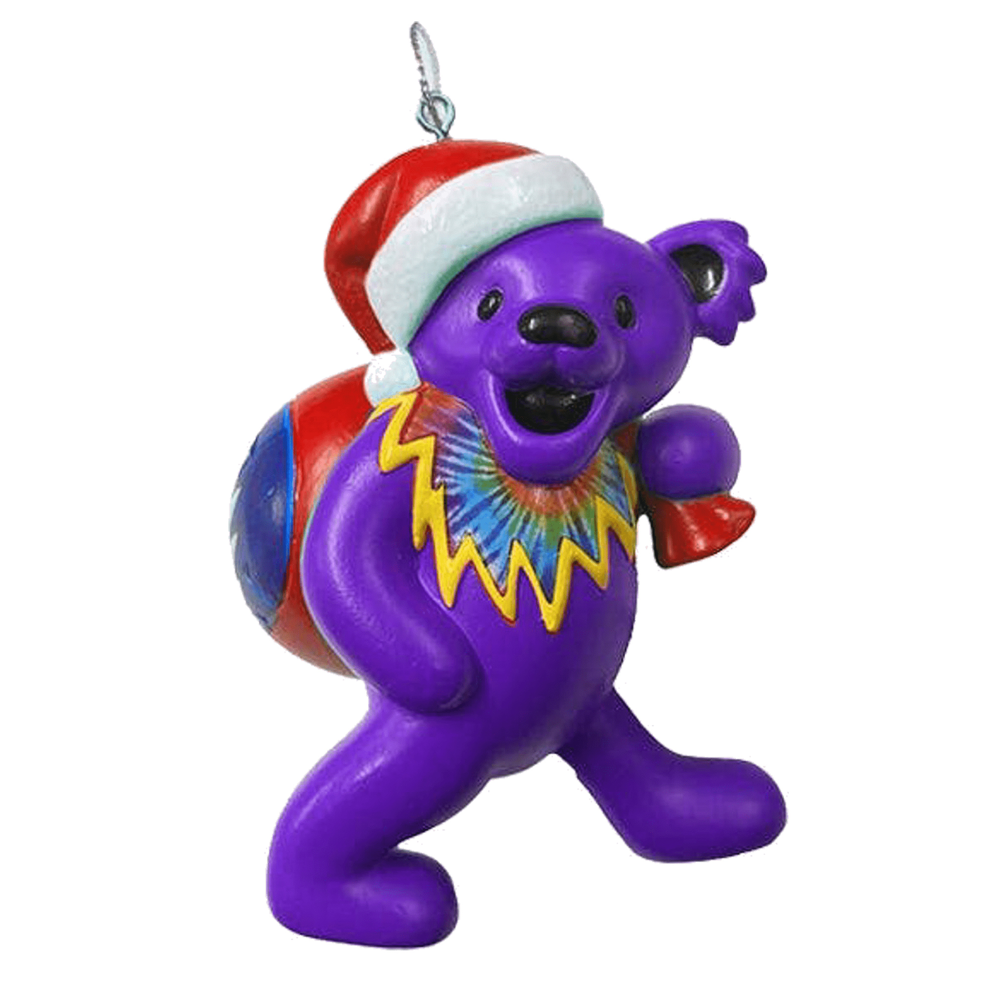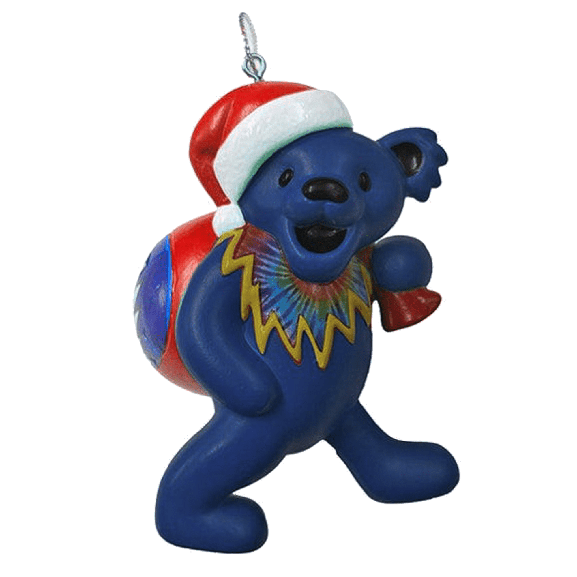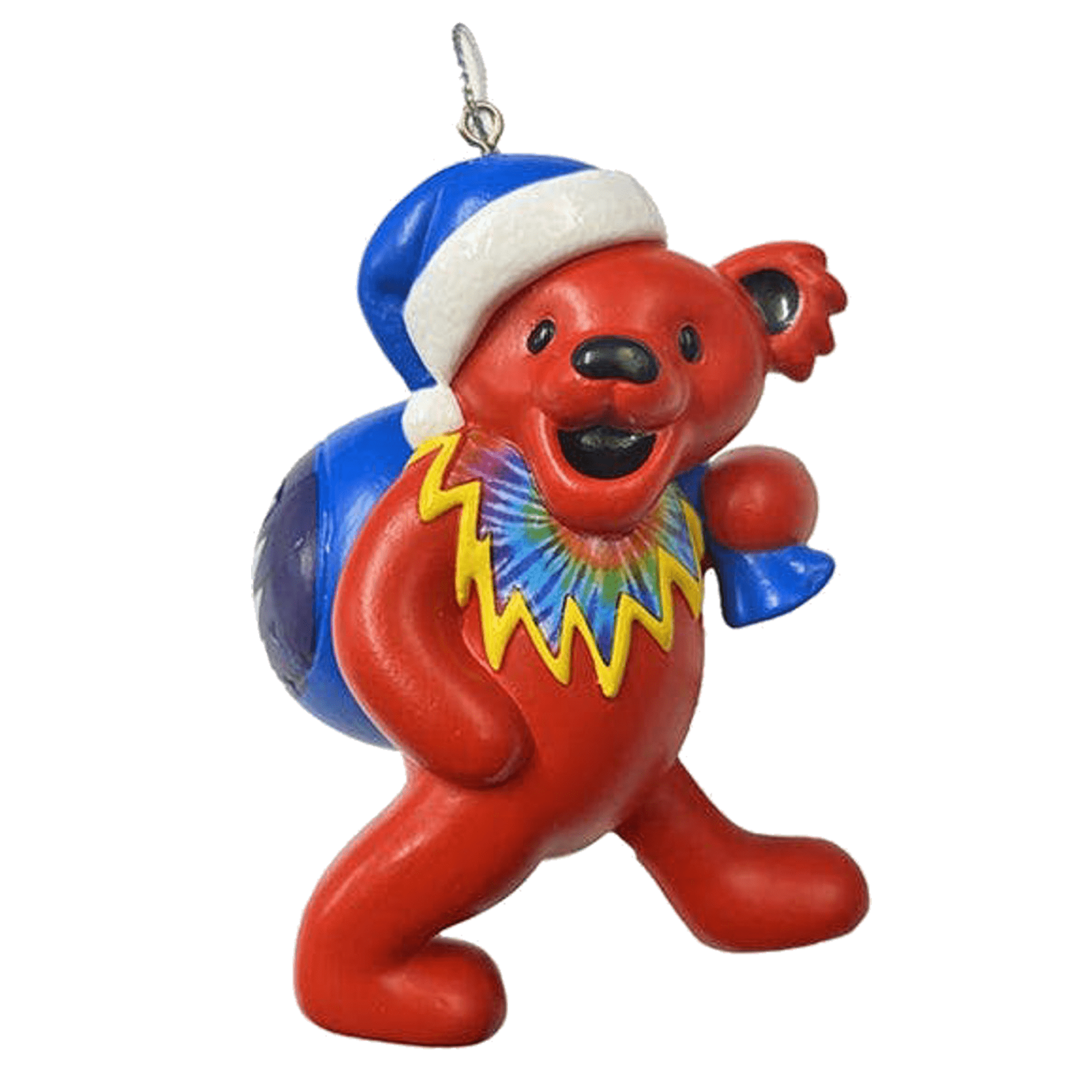 Grateful Dead Santa Bear With Bag Christmas Ornament. Imagine all the Dead Head treats this Grateful Dead Santa Bear has stashed in his thirteen point bolt sack of presents! The perfect way to decorate any Grateful Dead fan's Christmas tree. Resin cast with glitter details, this ornament is durable and built to last. Collect them all!