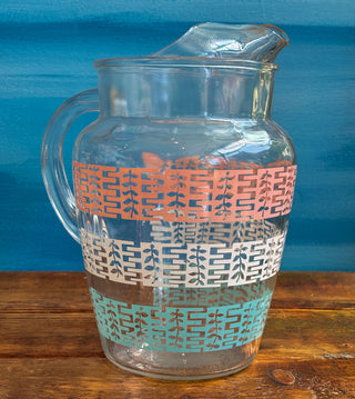 Vintage MCM 1960's Anchor Hocking Pastel Vines Leaves Glass Pitcher
