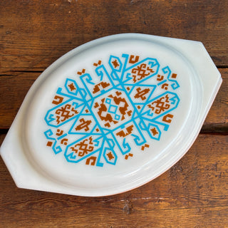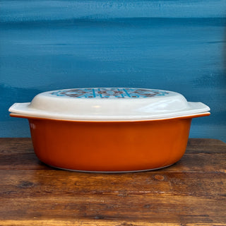 Vintage 1970's Pyrex RARE Navajo Embroidery Casserole Dish 045 with Lid