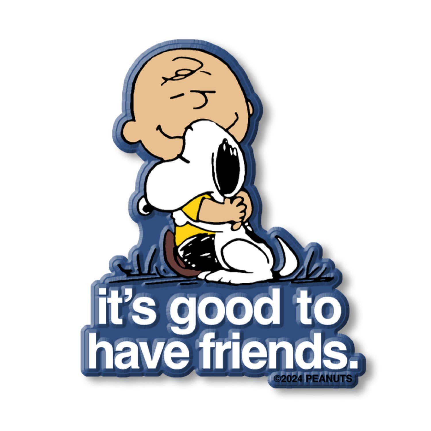 Peanuts Good Friends Magnet - Your fridge called—it needs more beagle. Luckily, we've got just the thing. Our exclusive line of classic, retro-style Snoopy magnets bring a dose of nostalgia straight from the comic strip to your kitchen. Made in the USA with sturdy, vintage-inspired molded rubber, they’re the perfect way to keep your grocery list secure and your fridge looking pretty...pretty...cool.