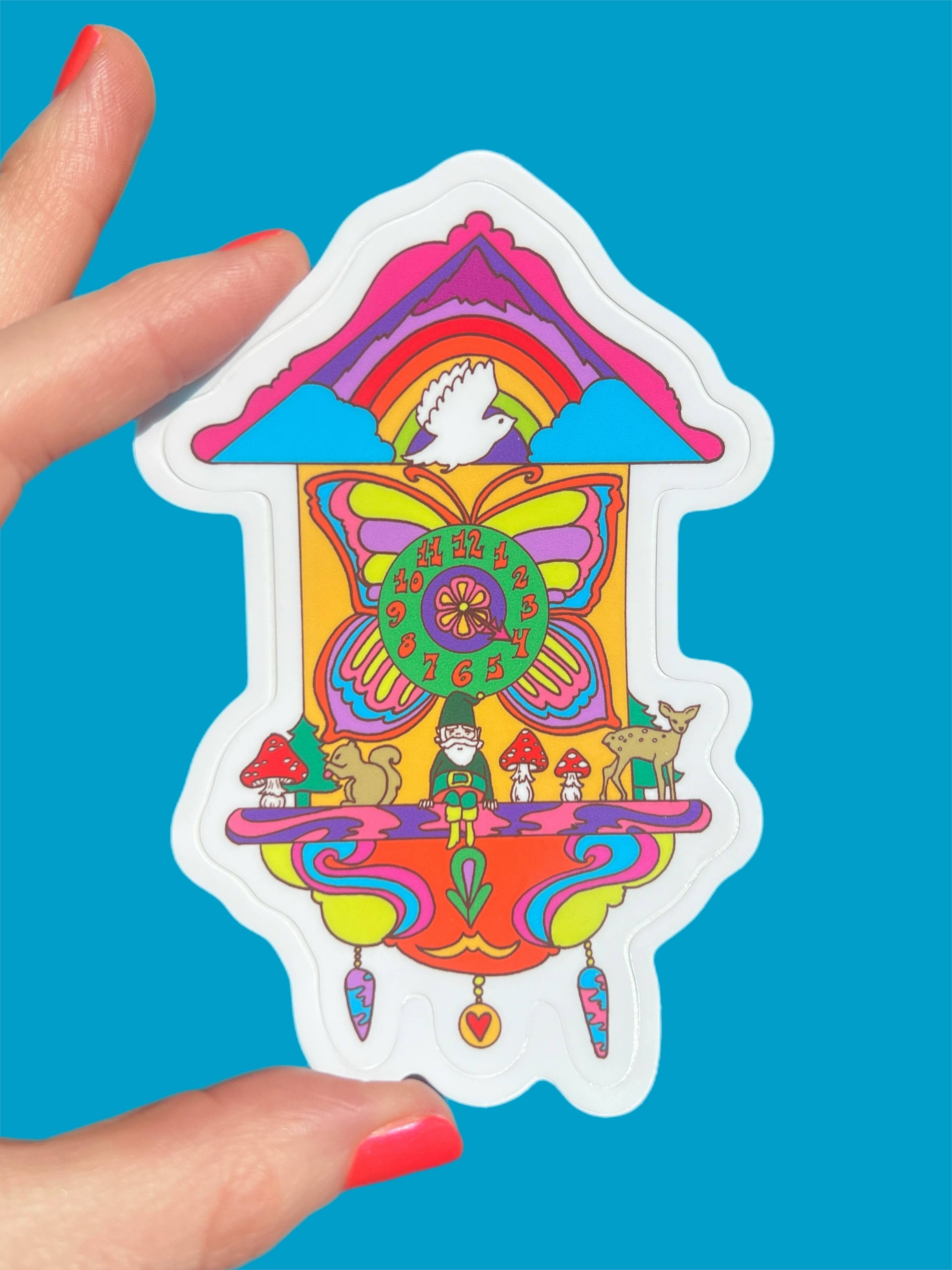 Cuckoo Clock Sticker - Add a splash of fun to any surface with this delightful Cuckoo Clock Sticker. Its playful design captures the charm of traditional cuckoo clocks in a cute, sticker form that's perfect for personalizing laptops, water bottles, notebooks, and more.