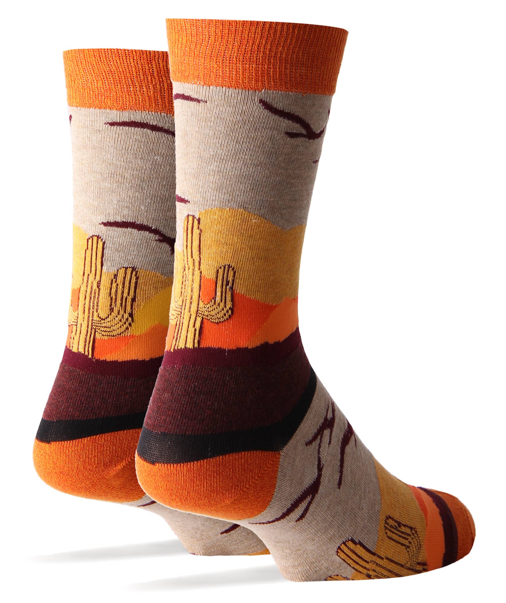 Desert Sky | Men's Premium Cotton Crew Socks - Rock a laid-back vibe with these premium cotton crew socks inspired by desert landscapes. Designed for the modern man who appreciates comfort without compromising on style, these socks deliver all-day softness and breathability. The eye-catching desert-themed pattern adds personality to your everyday look, whether you're kicking back at home or out exploring. Step into comfort that's as cool as the desert breeze!