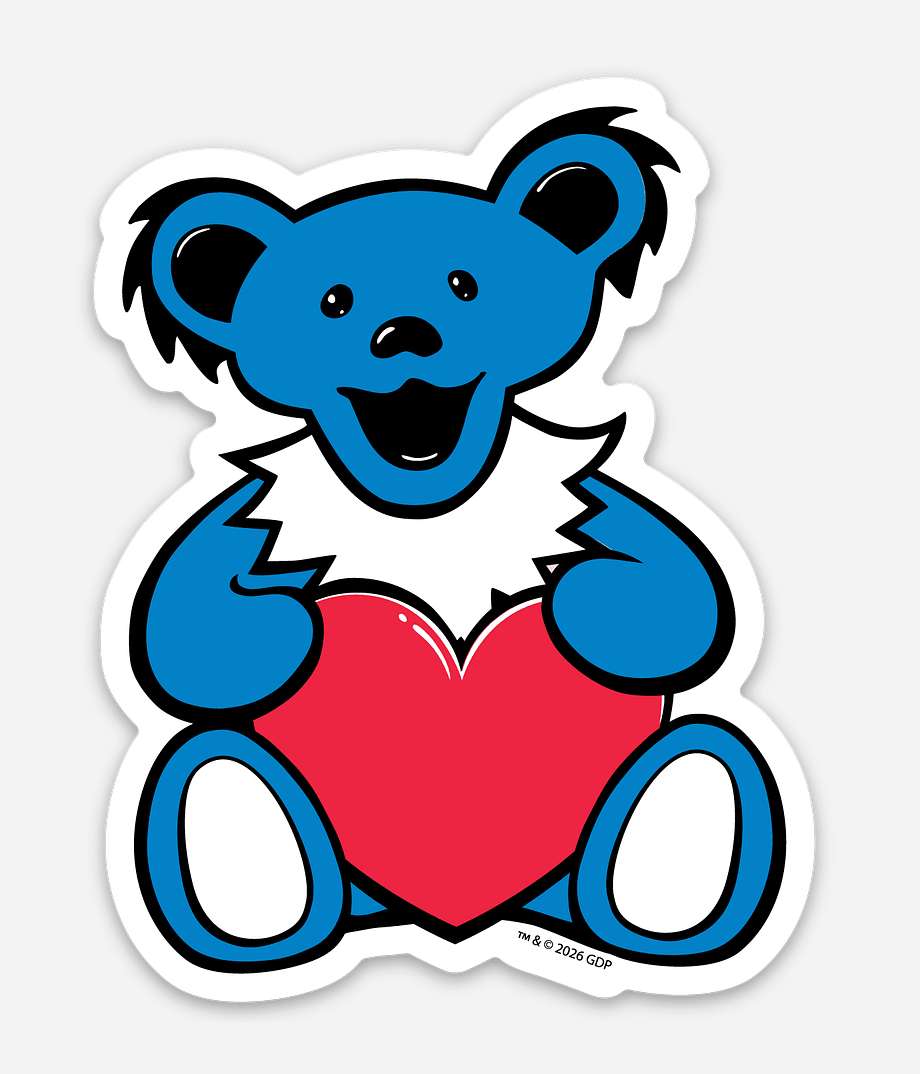 Grateful Dead Heart Bear Sticker. Spread the love with this cute Heart Bear Sticker. With bold colors and a big smile, it’s made to spread good vibes wherever it sticks.