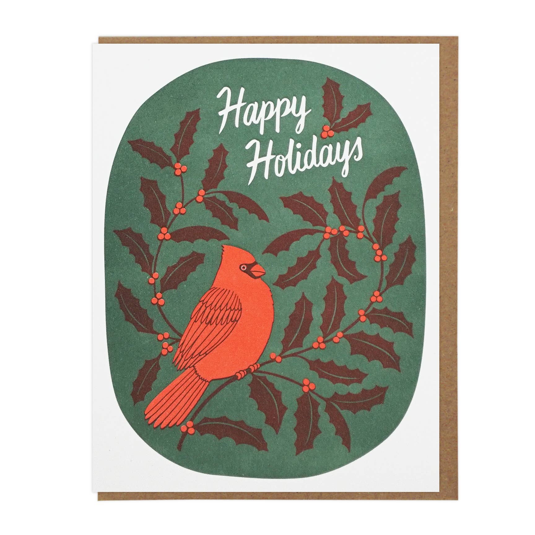Happy Holidays Cardinal Greeting Card. Send festive cheer with the Happy Holidays Cardinal Greeting Card. Featuring a bright, playful illustration of a cheerful cardinal, this card captures the magic of the holiday season in a fun and vibrant way. Perfect for spreading joy to friends and family, its lively design and warm wishes make every celebration feel extra special!