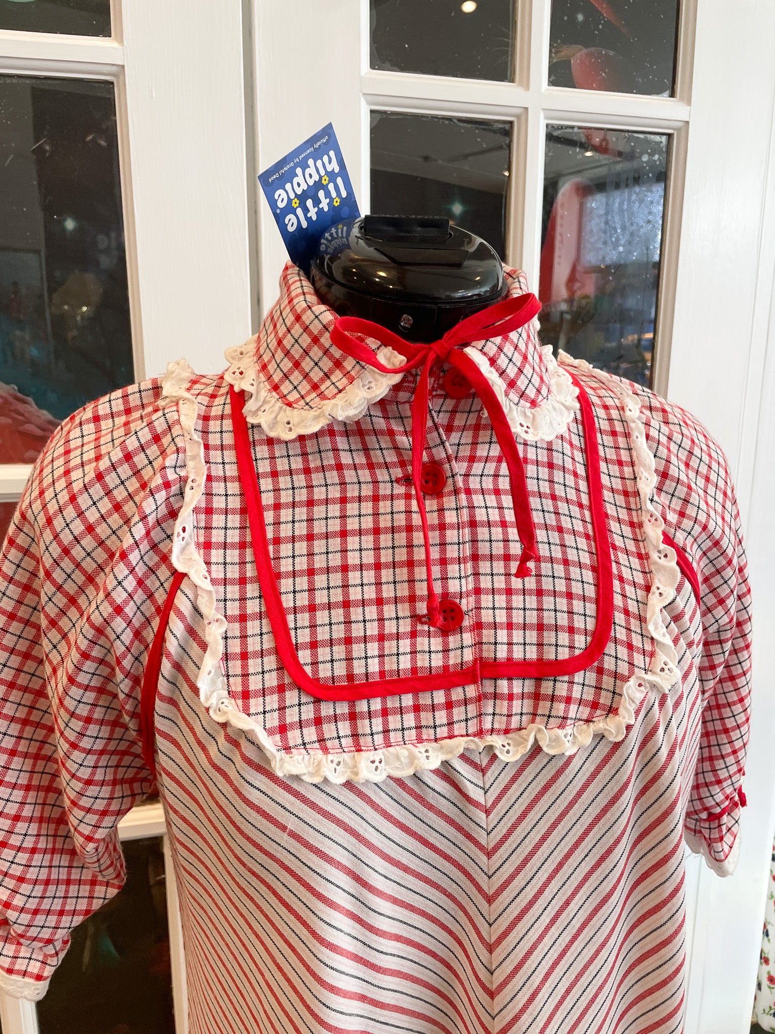 Vintage 1970s Red Stripes Prairie Maxi Long Dress.