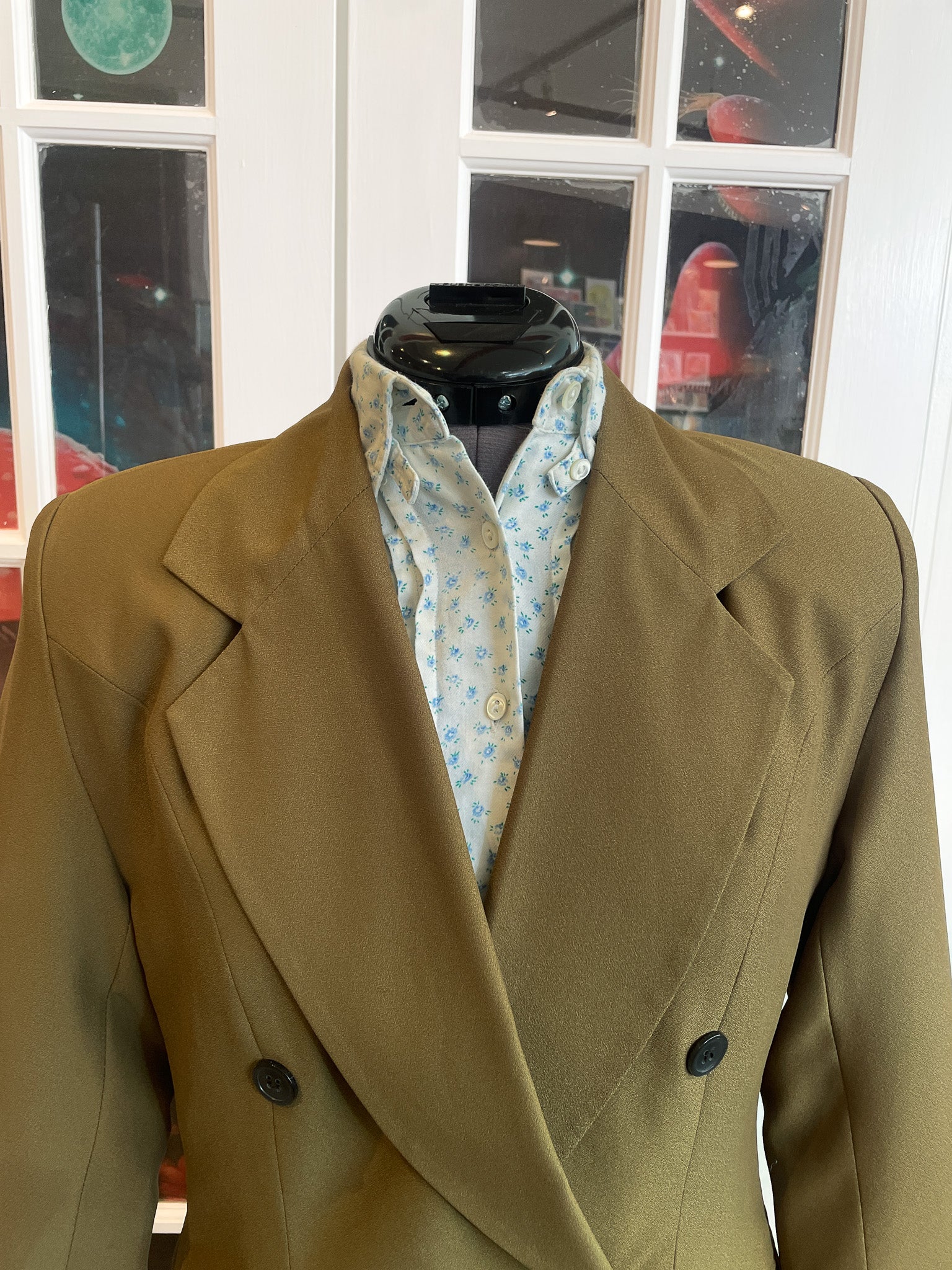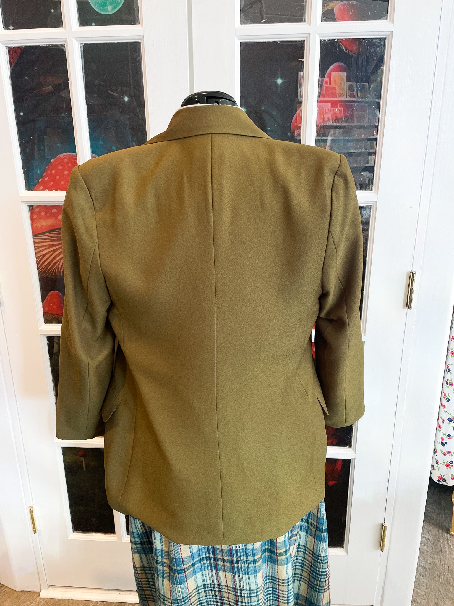 Vintage 1980s 1990s Shoulder Pads Chic Green Blazer.