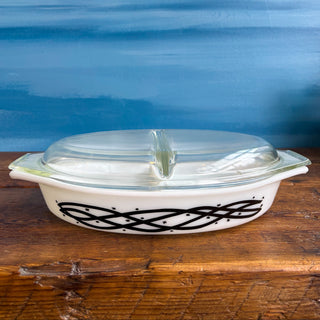 Vintage Pyrex Barbed Wire 1958 Divided Casserole Dish