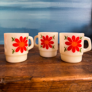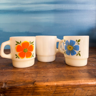 Vintage Fire King Anchor Hocking Flowers Stackable Mugs