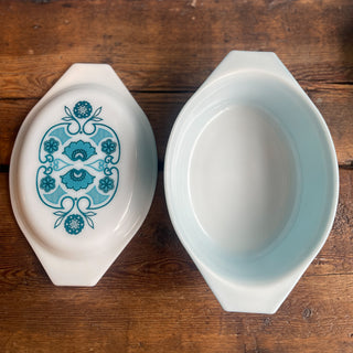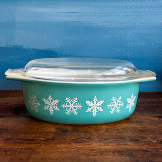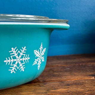 Vintage Pyrex 043 Turquoise Snowflake 1 1/2 Qt Casserole Dish