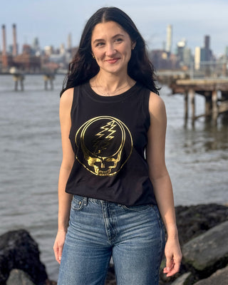 Grateful Dead Yellow Stripes Stealie Crop Racerback Tank