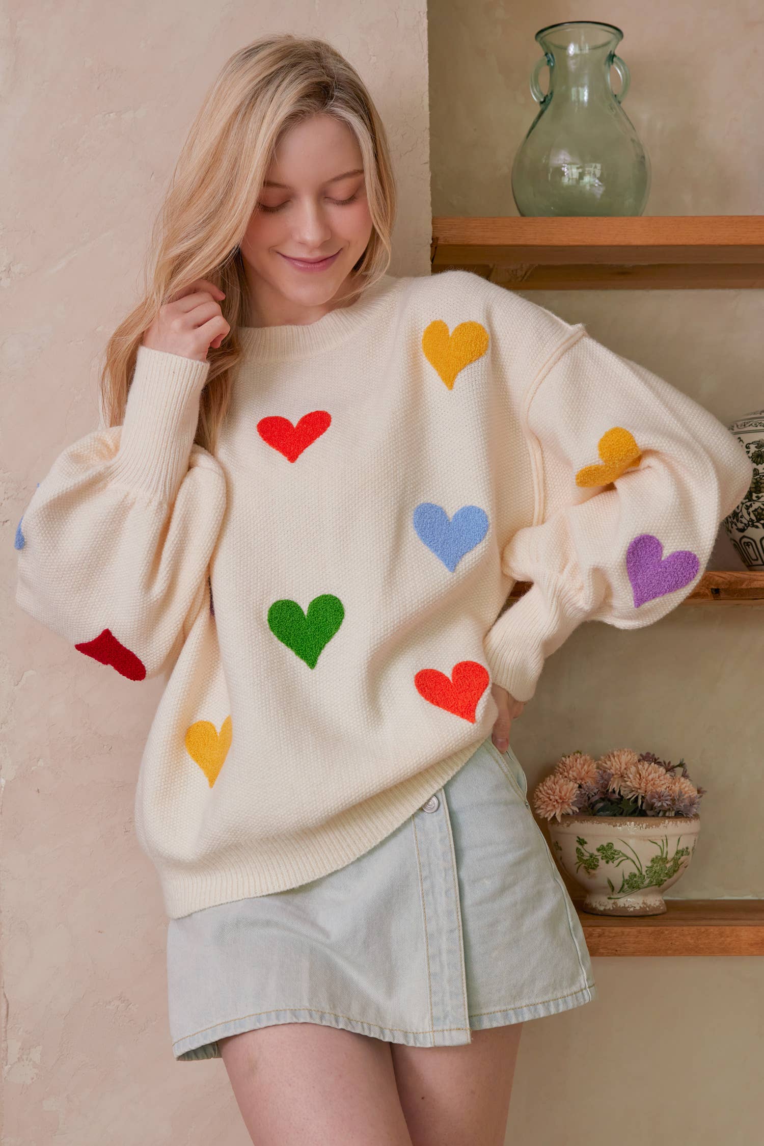 Sweet Hearts Round Neck Sweater - Cozy up in the Sweet Hearts Round Neck Sweater, designed to add a fun and loving touch to your wardrobe.